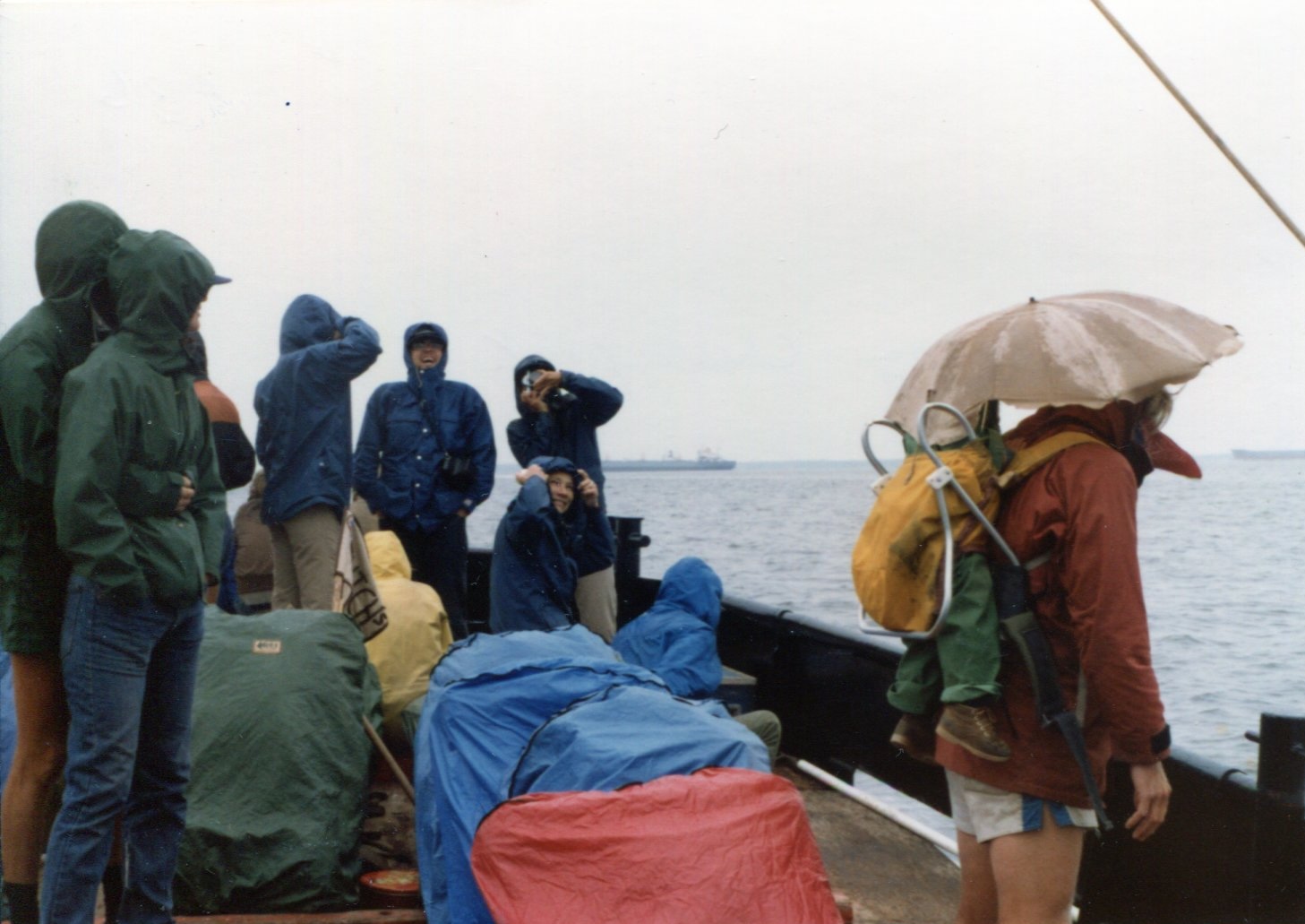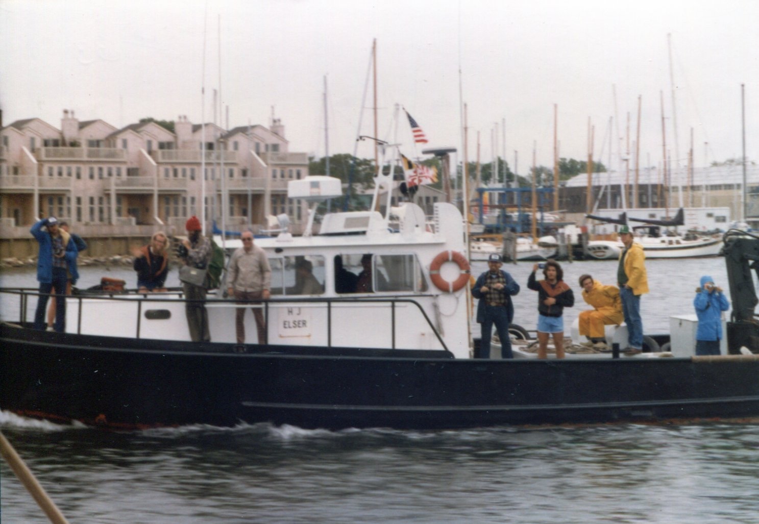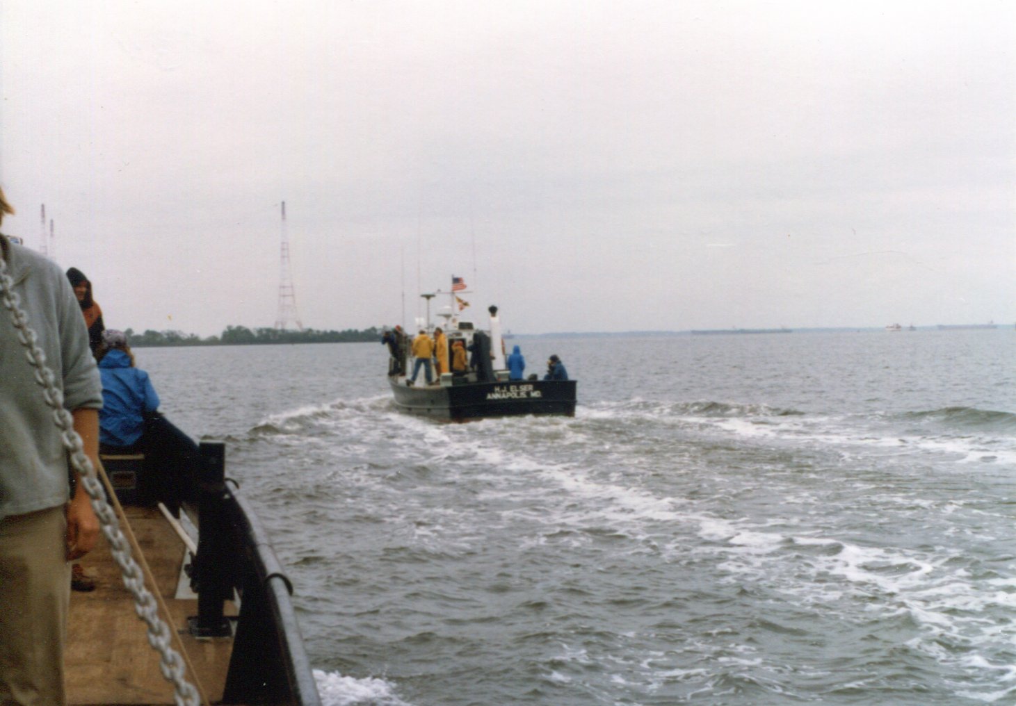 ![]() Tim Ernst, Randy Blymire, John Olmsted, Tan Jacket Man, Doug Marshall, Tim Geoghegan, & others ?? Two Chesapeake Bay Ferries were provided; this one appears to be the H J Elser Ferry. May 19, 1981 |