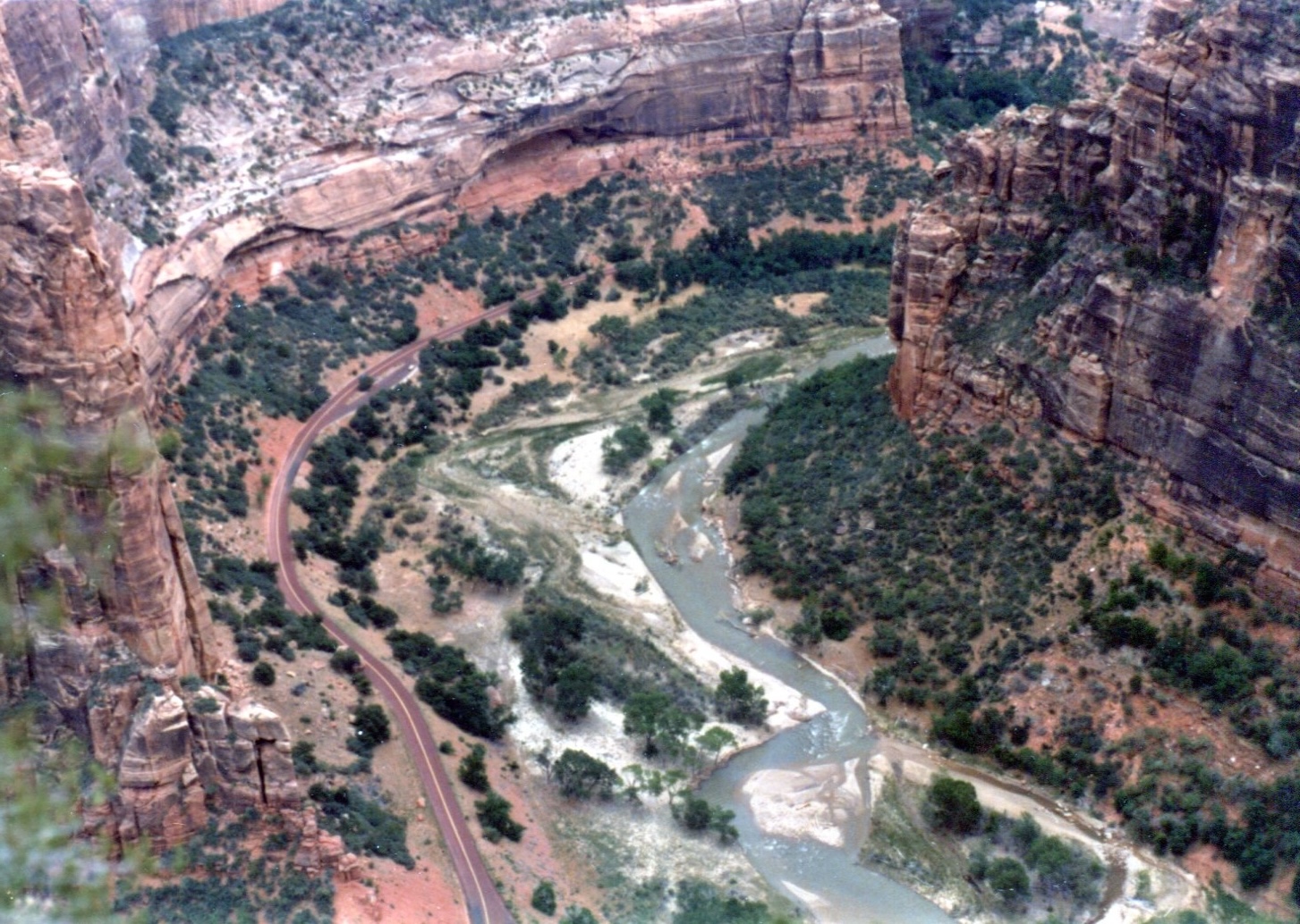 ![]() Zion Canyon National Park from Angels Alter, 1500' above June 19, 1980 |