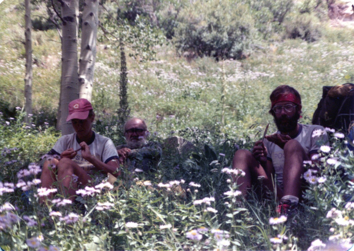 ![]() Marce Guerrein, Dave Backus, Jeannie Harmon Possibly near Cowpuncher Ranger Station Dixie National Forest, Utah - July 8, 1980 Photo by Rex Halfpenny |